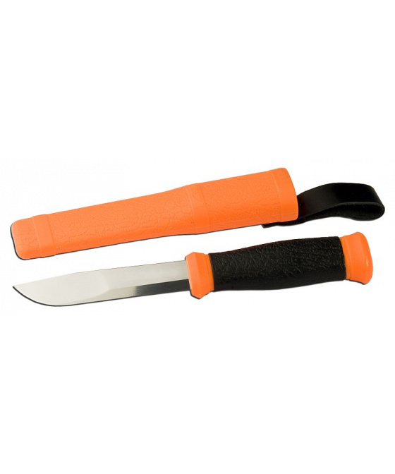 -švédský nůž velmi vysoké kvality s typickou profilovanou skandinávskou čepelí -nůž oblíbený outdoorovými nadšenci stejně jako lovci a rybáři byl původně vyvinutý pro cross-country lyžování -používá se také jako prvotřídní pracovní nůž určený pro jemné tesařské nebo elektrikářské práce či pro pracovníky ve stavebnictví -všestrannost nože lze využít od filetování ryb, stahování, bourání až po krájení chleba a mazání -čepel je vyrobena ze švédské nerezové oceli válcované za studena a kalené na HRC 56,5 s ostřím odolnějším proti opotřebení -vzorovaná tvarovaná rukojeť z odolného plastu je potažená vrstvou měkké přilnavé termoplastické pryže, odolné proti skluzu -plastová záštita o délce 3,3 cm zabraňuje sklouznutí ruky a poranění prstů -polymerové plastové pouzdro je orientované doprava i doleva -pouzdro je snadno omyvatelné, otvor ve špičce pouzdra usnadňuje odtok -kožený úchyt na opasek