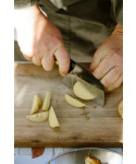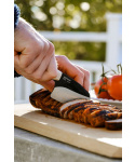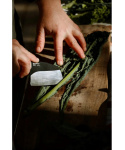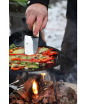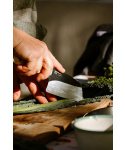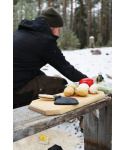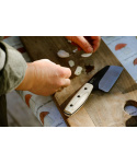 Morakniv hrdě představuje největší kolekci outdoorových nožů za poslední desetiletí. S novými noži se podíváme o staletí zpět v čase a připomeneme si, že příběh naší drahé značky Morakniv začíná dlouho předtím, než poprvé spatřila světlo světa. Ručně vyrobený nůž Rombo s konstrukcí full tang optimalizovaný pro vaření v přírodě. Geometrie rukojeti spolu s výraznou čepelí - sekáčkem umožní zlepšit vaše kuchařské dovednosti. Použijte k dochucení svých pokrmů plody lesa a příprava jídla se pro vás stane skutečným kulinářským zážitkem. Jedinečná ergonomicky tvarovaná rukojeť z pečlivě vybraného světlého jasanového dřeva z evropských lesů certifikovaných FSC® nabízí různé flexibilní úchopy, které se budou hodit, když potřebujete porcovat, sekat, krájet nebo loupat. 2,5 mm silná černěná čepel typu sekáček vyrobená ze švédské nerezové oceli s HRC 58 poskytuje pevnost a stabilitu při jakémkoli řezu. Pouzdro z černé kůže činěné zeleninou chrání ostří před ztupením a vás před možným poraněním. Pouzdro není vybavené poutkem na opasek. PŘÍJMENÍ, KTERÁ DOKRESLUJÍ NÁŠ PŘÍBĚH Díky blízkosti švédské přírody bohaté na suroviny, jako je železná ruda a dřevo, existovala v oblasti Mora vždy silná řemeslná tradice. Lidé z Mory vyrábějí ostré nože pro celý svět již více než 400 let. Stejně tak dlouho, jako se v oblasti vyskytovali nožíři, dominovali po několik generací mužským křestním jménům jména Anders a Erik, ženským zase Anna a Kerstin. Děti často dostávaly stejné křestní jméno jako jejich rodiče nebo prarodiče. Když bylo ve stejné vesnici příliš mnoho lidí jménem Anders nebo Anna, bylo před křestní jméno přidáváno příjmení. Příjmení mohlo být převzato z dovednosti předchozího příbuzného, jména předka nebo zeměpisného jevu. Pak by se Anna mohla jmenovat Smids-Anna, protože její předkové byli kováři, nebo Anders se mohl jmenovat Sol-Anders, protože pocházel ze sousedního ostrova Sollerön. A tato příjmení tvoří společnou nit celé naší historie. Nyní s hrdostí představujeme naši novou kolekci nožů s dřevěnou rukojetí. Jejich názvy pocházejí od lidí, kteří se tak či onak podíleli na založení výroby nožů v kraji Mora. PŘÍBĚH ROMBA Rombo-Anders Eriksson Ström byl současníkem prvních výrobců nožů z oblasti Mora a spolu s místním důvěryhodným ševcem přispěl k výrobě odolných pouzder nožů z vulkanického vlákna. Cesta k úspěchu však byla delší, než si Rombo-Anders dokázal představit, když se zpočátku setkával se skepsí výrobců nožů. Teprve když předvedl výhodnou ergonomii nového materiálu, pouzdra nožů se skutečně chytla. Z archivu obce "Když mluvíme o nožích z Mory, je třeba zmínit zručného řemeslníka Rombo-Anders Erikssona a jeho inovativní mysl. Bylo to během polední přestávky na konci 19. století, když si všiml nové krabice svého syna Carla z vulkanizovaného vlákna. Okamžitě uviděl potenciál, vyřízl kus a přeměnil ho na pochvu na nůž. Zda někdy nahradil krabici svého syna, je stále nejasné, ale jeho životní dílo a odkaz žijí navždy." Co to je certifikace FSC®? FSC® znamená Forest Stewardship Council - česky "Rada pro správu lesa". Tato nezisková organizace podporuje ekologicky šetrné, sociálně prospěšné a ekonomicky životaschopné obhospodařování lesů. Cílem je chránit lesy na Zemi a minimalizovat nelegální těžbu dřeva. Pokud vidíme na výrobku logo FSC®, můžeme si být jisti, že svým nákupem podporujete šetrné lesní hospodaření k přírodě. Stále více výrobků obsahuje logo FSC®, protože lidem stále více záleží na ekologii. NA ZBOŽÍ VE SLEVĚ NELZE UPLATNIT SLEVOVÝ KUPON