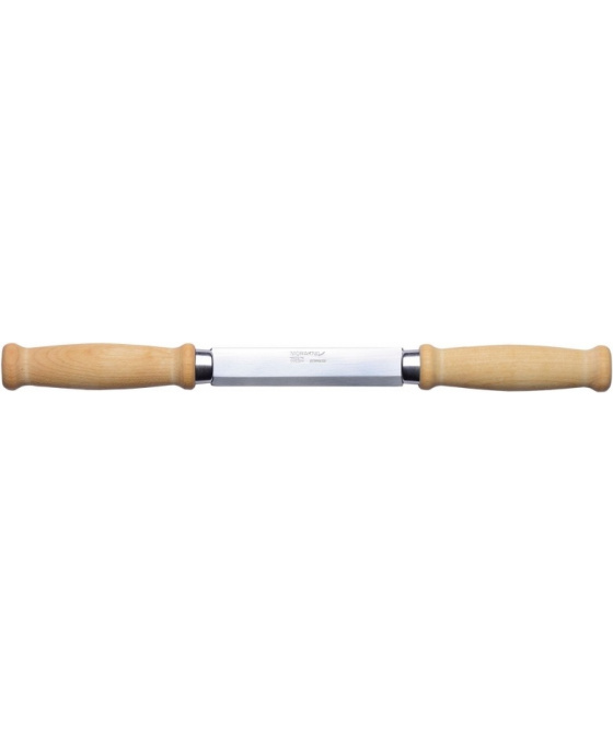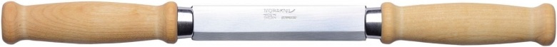 jednoduchý švédský dvouruční nůž, který je poctou švédské řemeslnné tradici a ikonickým symbolem již po více než 100 let tento všestranný nůž byl vyvinutý v kraji Mora a je využívaný již několika generacemi řemeslníků a zálesáků dvě dřevěné rukojeti z přírodního březového dřeva nabízejí spolehlivost a příjemný pocit při používání rukojeti jsou příčně spojeny ocelovým nožem s ostřím ke spodní straně čepel je vyrobena ze švédské nerezové oceli válcované za studena a kalené na HRC 56,5 s ostřím odolnějším proti opotřebení poříz je dodnes potřebný nástroj truhlářů, tesařů, bednářů, kolářů, výrobců šindelů a je užíván v průmyslových i domácích dílnách pro úpravu nástrojů vhodné pro praváky i leváky