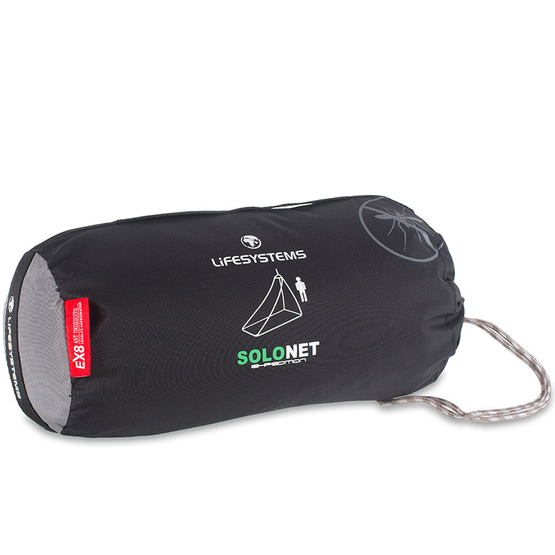 Moskytiéra z černé tkaniny pro 1 osobu ošetřena impregnací EX8 Antimosquito s unikátním systémem zavěšení QuickHang. Moskytiéra má tvar klínu s 1 závěsným bodem a zpevňovacím rámem v horní části. Je vybavena nylonovou obšívkou kolem základny, kterou lze zasunout pod postel. V nylonové obšívce jsou 4 upevňovací body. Je vyrobena z černé síťoviny s hustotou zhruba 156 děr na palec. X8 AntiMosquito využívá permethrin pro jeho repelentní a insekticidní účinky. EX8 AntiMosquito vydrží aktivní až po 2 roky nebo 20 vyprání. Všechny Lifesystems moskytiéry jsou vyrobeny z odolné tkaniny, která poskytuje vysokou odolnost a skvělou vzdušnost. Lifesystems moskytiéry převyšují svými parametry požadavky stanovené WHO.
