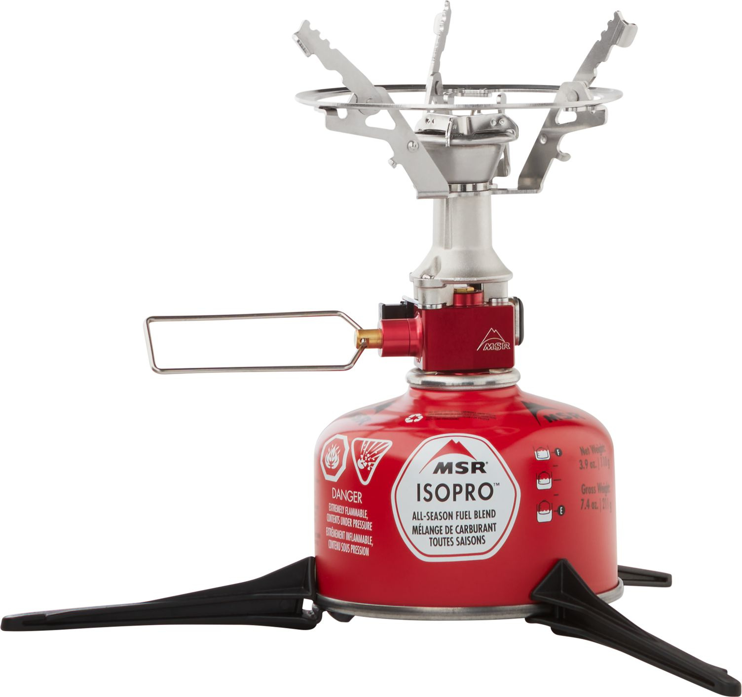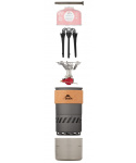 Inovativní systém vařiče překonává konkurenci svou všestranností, umožňuje „přepnout“ na vlastní nádobí rychlým vyklopením podpěr hrnce. Dokonalý systém vařiče „vše v jednom“ pro cestovatele, kteří hledají vařič i s ohledem na cenu.