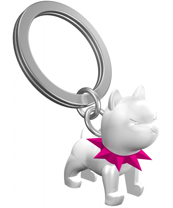 MTM Klíčenka Bílý buldok s růžovým obojkem