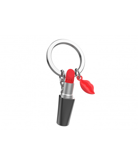 Usmívejte se hlasitěji, smějte se odvážněji. Červené rty, šťastné tajemství. Klíčenka rtěnky se rty je baleno v dárkové krabičce.