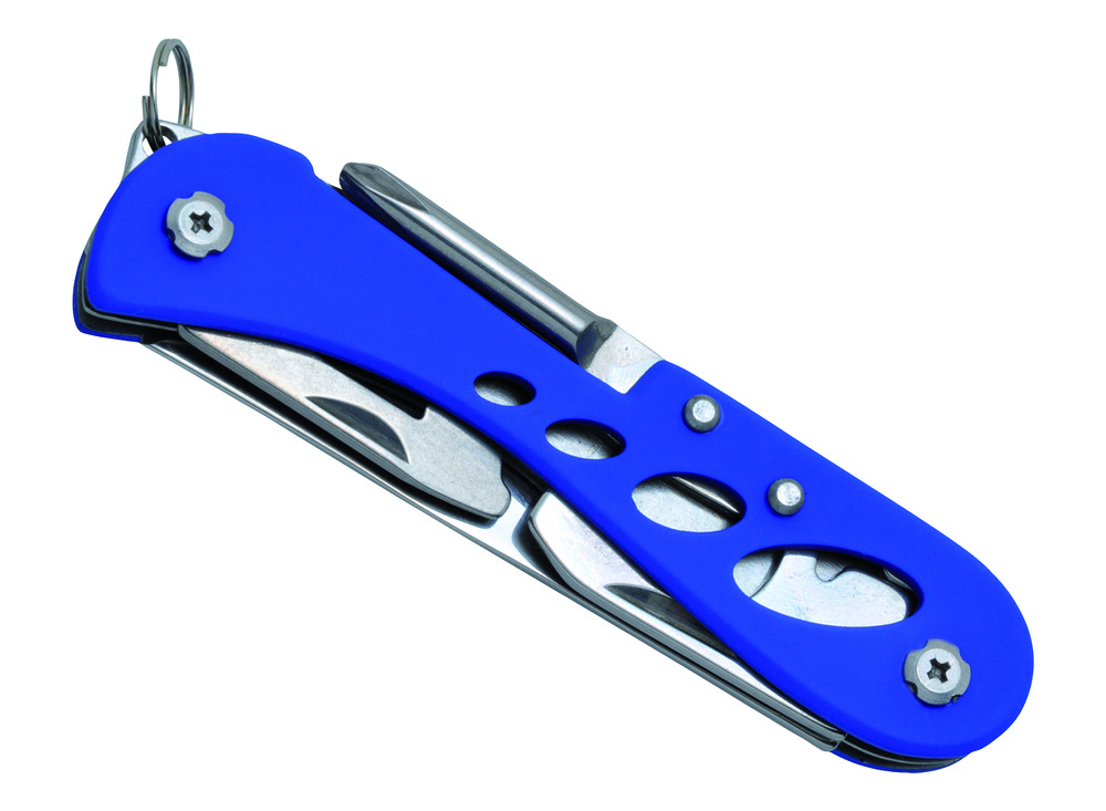 Multifunkční kempingový nůž, 7 funkcí za výhodnou cenu. Funkce nože: nůž 7cm, otvírák lahví, otvírák konzerv, 5mm a 2 mm plochý šroubovák, vývrtka, kroužek.