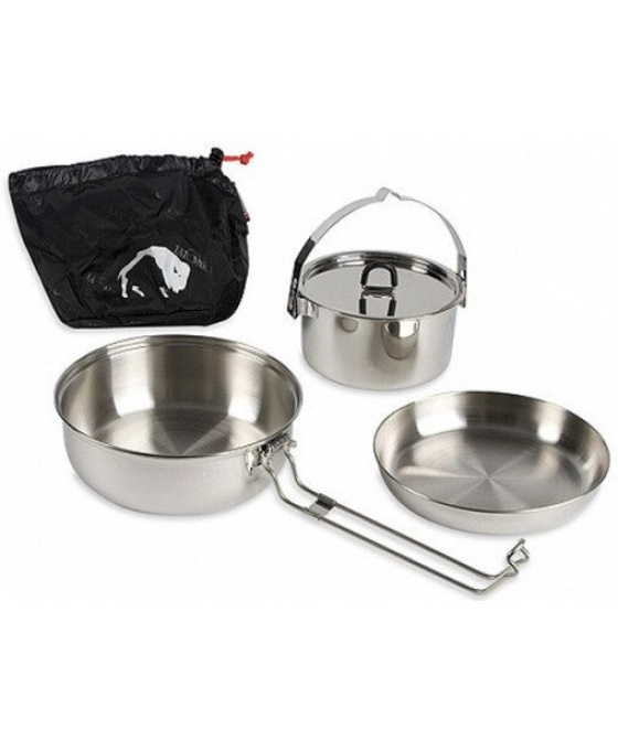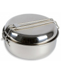 Praktický nerezový set s hrncem,miskou a pánvičkou. Vše lze složit do jedné nádoby a tak nezabere při cestování mnoho místa. Ochranný cestovní obal v balení. Hmotnost 525 gramů. Materiál nerez ocel. Pánvička 17,3 x 6 cm; hrnec 13,8 x 7 cm, objem 0,8 l; miska 16,5 x 3 cm.