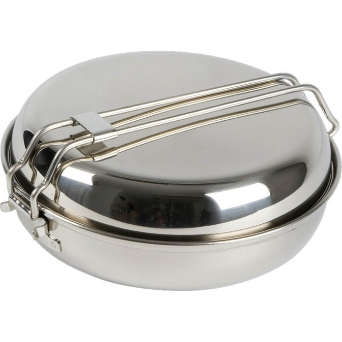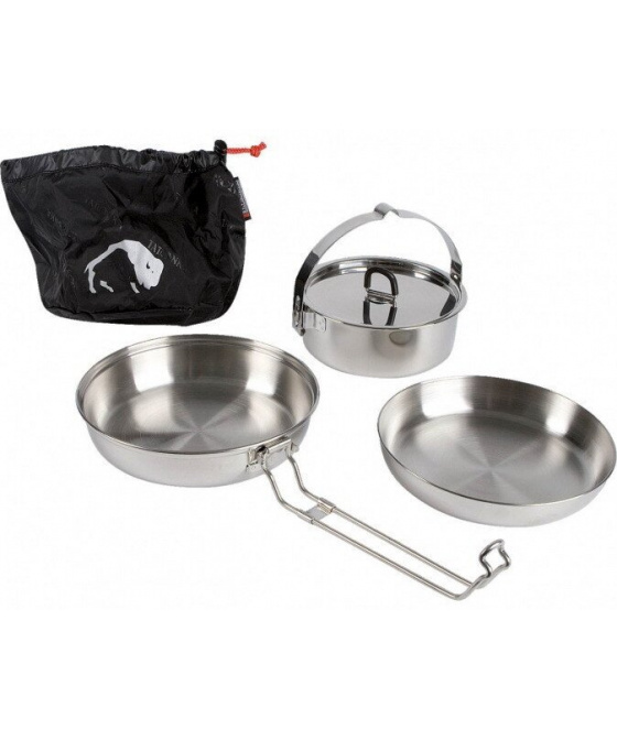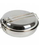 Praktický nerezový set s hrncem,miskou a pánvičkou. Vše lze složit do jedné nádoby a tak nezabere při cestování mnoho místa.Ochranný cestovní obal v balení. Hmotnost 495 gramů. Materiál nerez ocel. Pánvička 17,3 x 4 cm; hrnec 13,5 x 5 cm, objem 0,6 l; miska 16,5 x 3 cm.