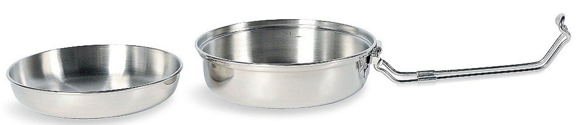 Dvoudílná nerezová souprava Tatonka Scout pro vaření i skladování potravin se skládá z hrnce s víčke