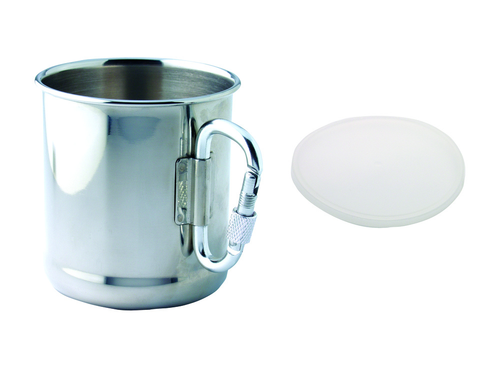 Nerezový hrnek s karabinou Baladeo PLR065,plastové víčko