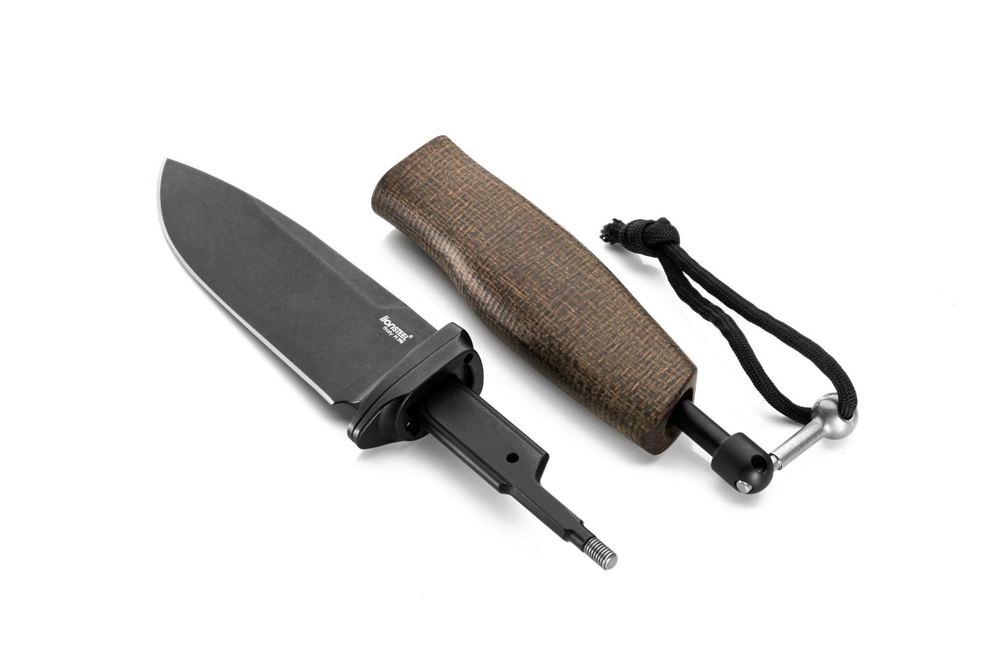 Nůž s pevnou čepelí LionSteel Acha-Green Burlap-Black blade AH B BLG čepel M390 black,rukojeť micarta,pouzdro