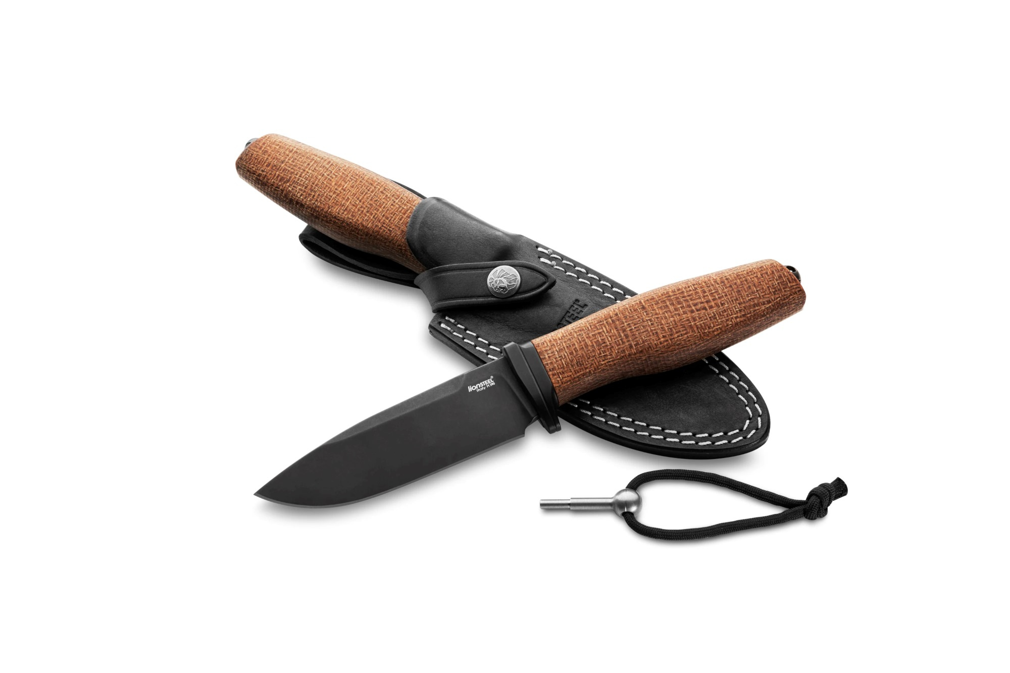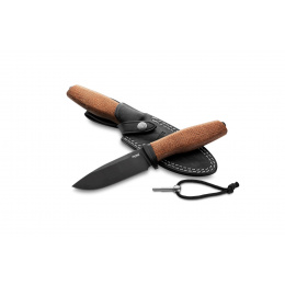 Nůž s pevnou čepelí LionSteel Acha-Natural Burlap-Black blade AH B BLN čepel M390 black,rukojeť micarta,pouzdro