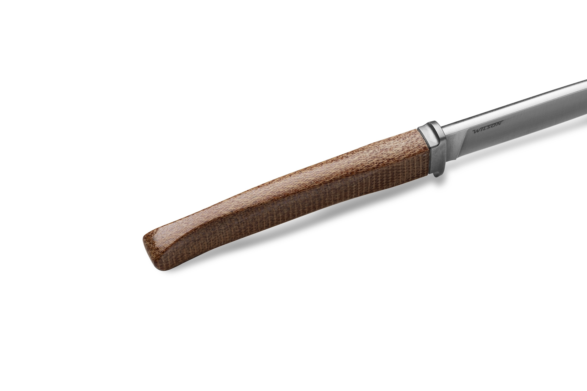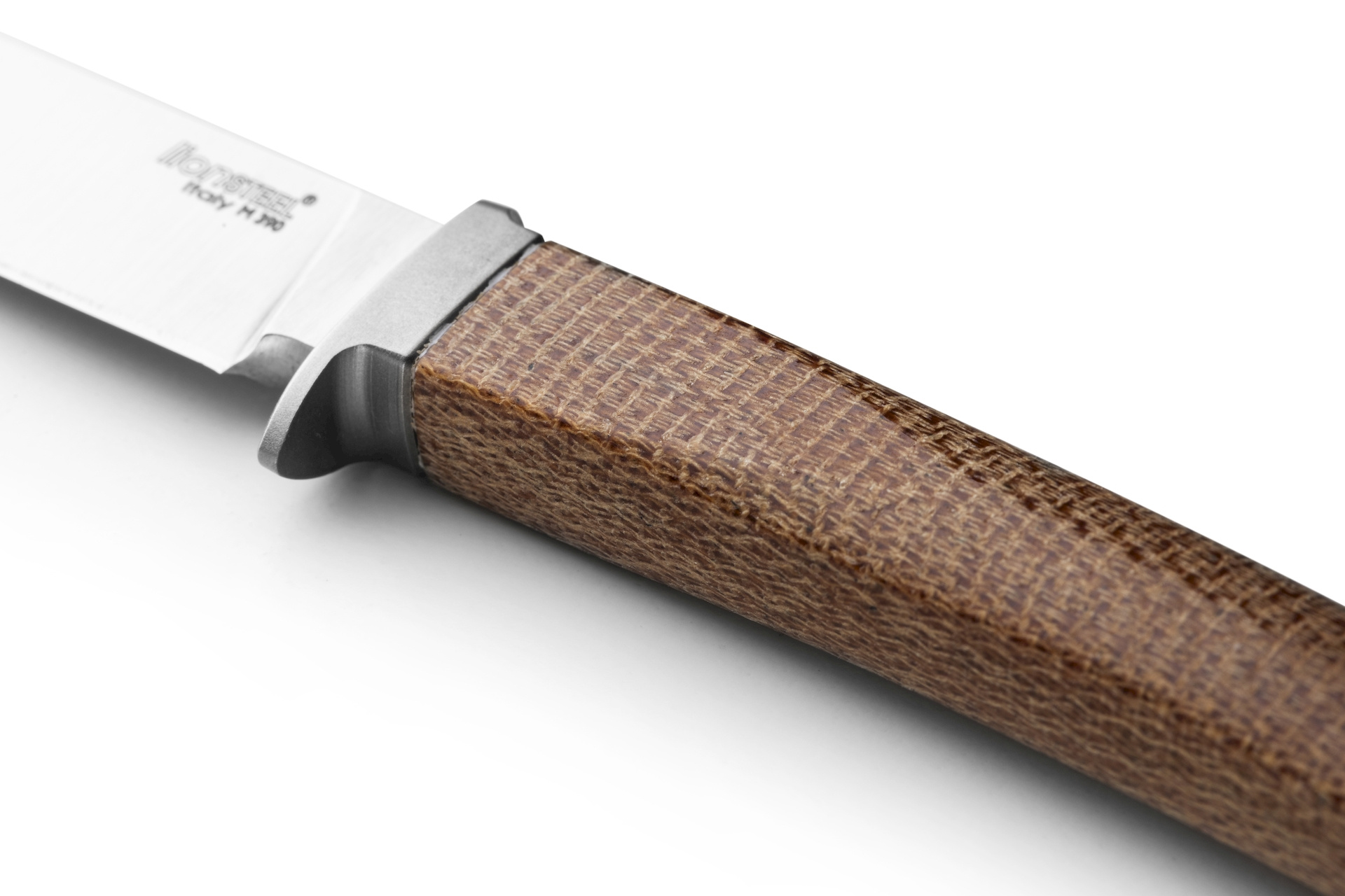Nůž s pevnou čepelí z kolekce nožů AGO se štíhlým tvarem rukojeti a titanovou kroužkovou maticí. Dod