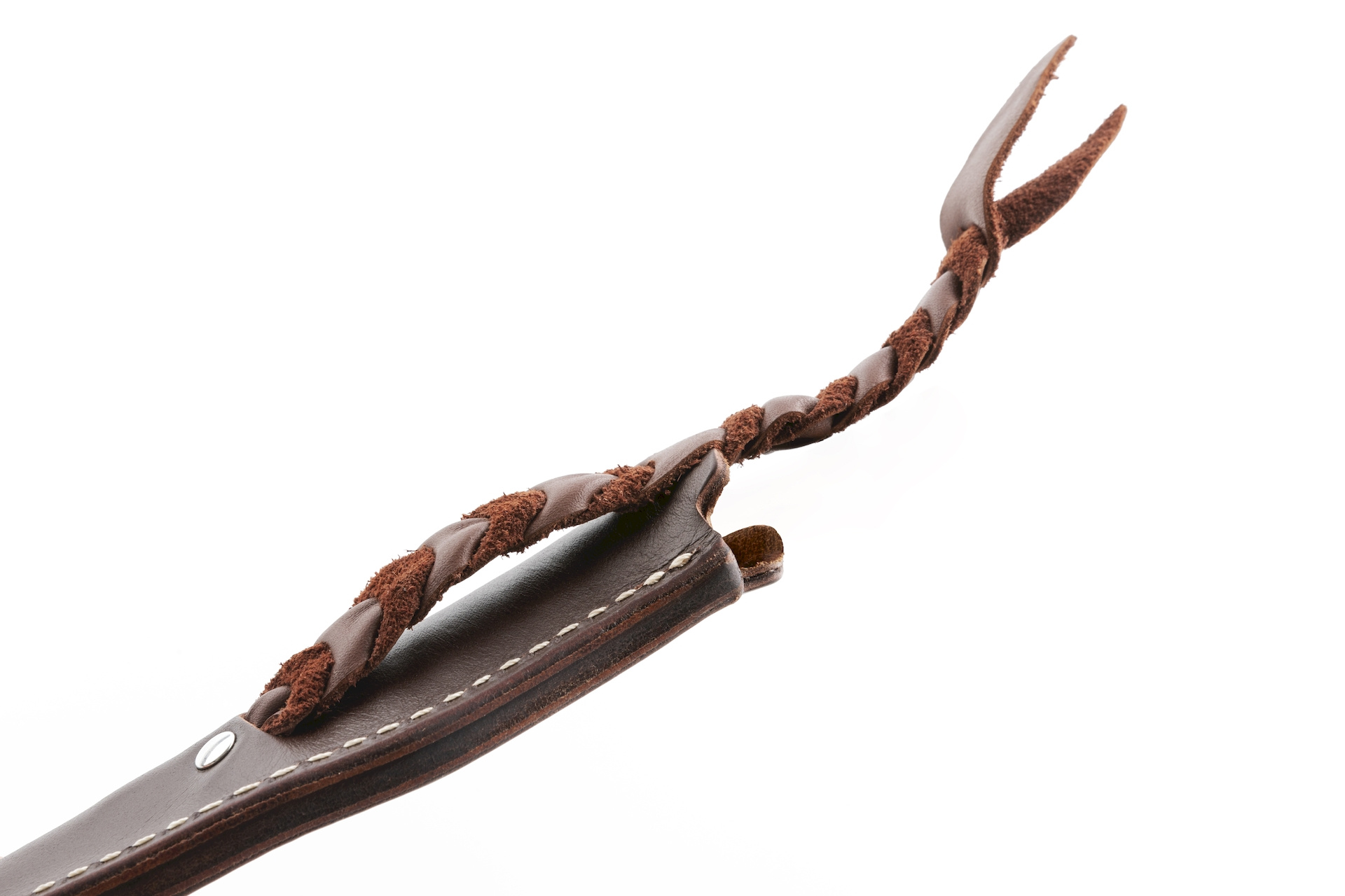 Nůž s pevnou čepelí z kolekce nožů AGO se štíhlým tvarem rukojeti a titanovou kroužkovou maticí. Dodáváme s elegantním koženým pouzdrem kapesní velikosti.
