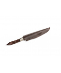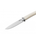 Nůž s pevnou čepelí z kolekce nožů AGO se štíhlým tvarem rukojeti a titanovou kroužkovou maticí. Dodáváme s elegantním koženým pouzdrem kapesní velikosti.