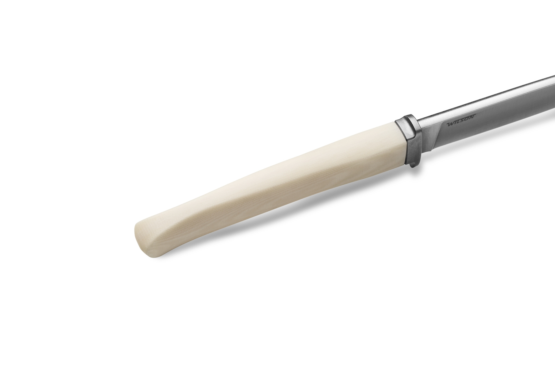 Nůž s pevnou čepelí z kolekce nožů AGO se štíhlým tvarem rukojeti a titanovou kroužkovou maticí. Dod