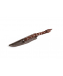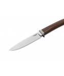 Nůž s pevnou čepelí z kolekce nožů AGO se štíhlým tvarem rukojeti a titanovou kroužkovou maticí. Dodáváme s elegantním koženým pouzdrem kapesní velikosti.