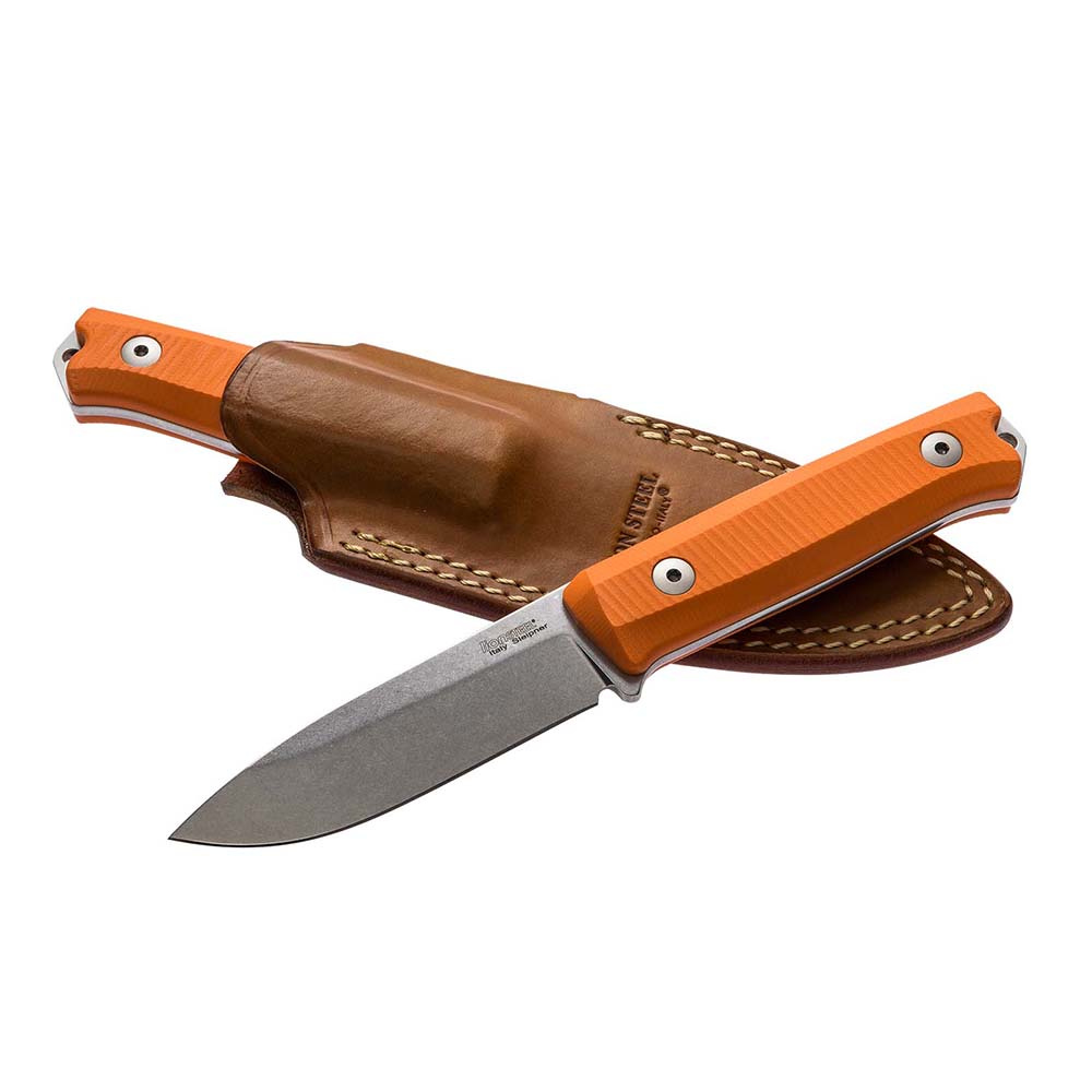 Nůž typu bushcraft s pevnou čepelí z ocele Sleipner, uložený do masivního koženého pouzdra