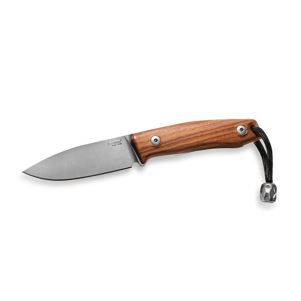 Velmi praktická a univerzální velikost nože s pevnou čepelí, verze s rukojetí z exotického dřeva Santos, dodáváno včetně pouzdra.