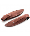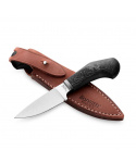 Nůž s pevnou čepelí s rukojetí z uhlíkového vlákna, dodáváno včetně koženého pouzdra.