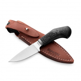 Nůž s pevnou čepelí s rukojetí z uhlíkového vlákna, dodáváno včetně koženého pouzdra.Více