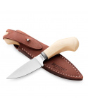 Nůž s pevnou čepelí s rukojetí z micarty, dodáváno včetně koženého pouzdra.Více