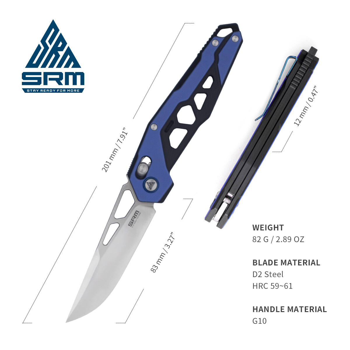 Nůž SRM 9225 je navržen s důrazem na styl i funkčnost. Kombinuje odolnost, nízkou hmotnost a snadné použití. Díky oboustrannému zámku (ambi lock) je vhodný pro praváky i leváky, ať už ho potřebujete pro každodenní práci nebo outdoorové aktivity.