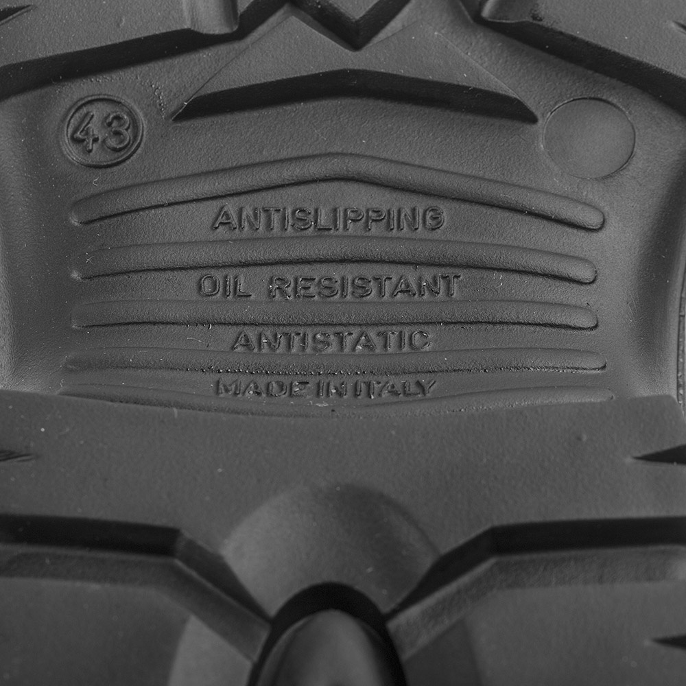 dvousložková PU+pryž, vysoce odolná vůči opotřebení, skvěle tlumící došlap, odolnost vůči uklouznutí SRC