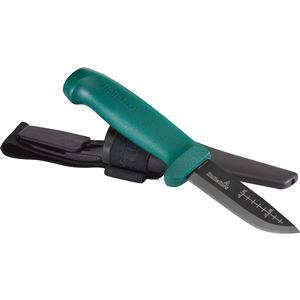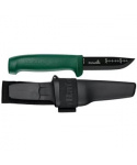 Outdoorový nůž Hultafors OK1Outdoorový nůž Hultafors OK1 je navržen pro náročné outdoorové aktivity, kde je potřeba odolný a spolehlivý nástroj. Tento nůž je ideální pro práci s dřevem, jako je vyřezávání nebo štípání, ale zvládne i jemné úkoly. Je vybaven čepelí se skandinávským výbrusem, která je vyrobena z japonské uhlíkové oceli SK5, zakalené na tvrdost 58–60 HRC. Čepel je opatřena antikorozním povlakem elektroforetickou depozicí (EPD), což zajišťuje ochranu proti rezivění.Rukojeť nože je vyrobena z extra odolného plastu PP, což zajišťuje dlouhou životnost a pohodlný úchop. Protiskluzový povrch rukojeti zajišťuje bezpečnou manipulaci, i když jsou ruce mokré nebo špinavé. Textilní poutko na pouzdru umožňuje připevnění na opasky až do šířky 80 mm, a je zde i praktická přihrádka na křesadlo. Hřbet čepele je navržen tak, aby byl použitelný s křesadlem pro rozdělávání ohně, což z něj dělá všestranný nástroj pro každého outdoorového nadšence.Parametry produktu: Celková délka: 225 mm Délka čepele: 93 mm Materiál čepele: Uhlíková ocel SK5 Tvrdost čepele: 58–60 HRC Povrch čepele: Černý povlak EPD Materiál rukojeti: Plast PP s protiskluzovým Santoprenem Poutko: Textilní, vhodné pro opasky do šířky 80 mm Hmotnost: 119 g
