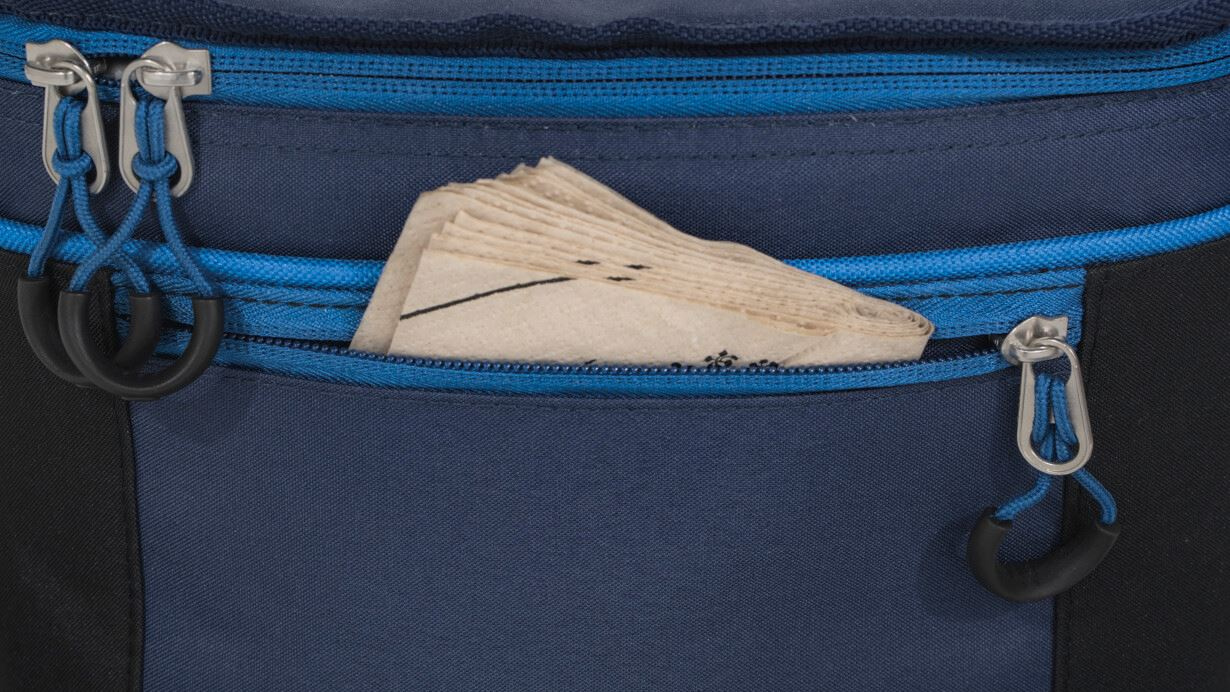 stylová chladící taška o objemu 6 litrů s ramenním popruhem, který lze upravit na rukojeť pro přenášení v ruce velký vstupní otvor ve tvaru písmene "U" s obousměrným zipem vnitřní síťovaná kapsa pro uložení chladícího bloku izolace o tloušťce 6 mm je testována podle normy BS EN12546-2:2000 vydrží chladná 7 hodin při použití chladícího bloku o objemu 800 ml díky voděodolné PEVA podšívce se taška velmi dobře čistí vnější kapsa na zip na drobnosti, jako je např. příbor, ubrousky apod. když se taška nepoužívá, snadno ji složíte do velmi malých rozměrů a zajistíte dvěma kompresními popruhy na suchý zip