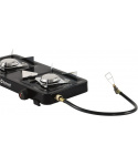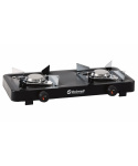 kompaktní přenosný plynový vařič v elegantním černém provedení určený pro vyznavače kempinku, táboření nebo pro použití na chatě stabilní konstrukce se dvěma hořáky s možností regulace výkonu a vysokým tepelným výkonem tělo vařiče je vyrobené z nerezové oceli plochý design pro snadné uskladnění a převoz plastové nožičky pro zajištění stability součástí balení je hadice s regulátorem spotřeba plynu je 218 g na hodinu / 218 g na hodinu na každý hořák výkon každého hořáku je 3000 W určeno pro použití se šroubovacími kartušemi se standardem EN417