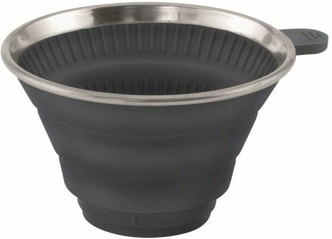 skládací filtr na kávu, který se jednoduše složí, když není používán díky své malé velikosti po složení se dobře skladuje silikonový držák a odolný nerezový okraj zajišťuje tvar silikon je odolný proti rozbití, snadno se čistí a lze jej mýt v myčce není určeno na vaření neobsahuje BPA doporučeno pro použití s termoskami Outwell