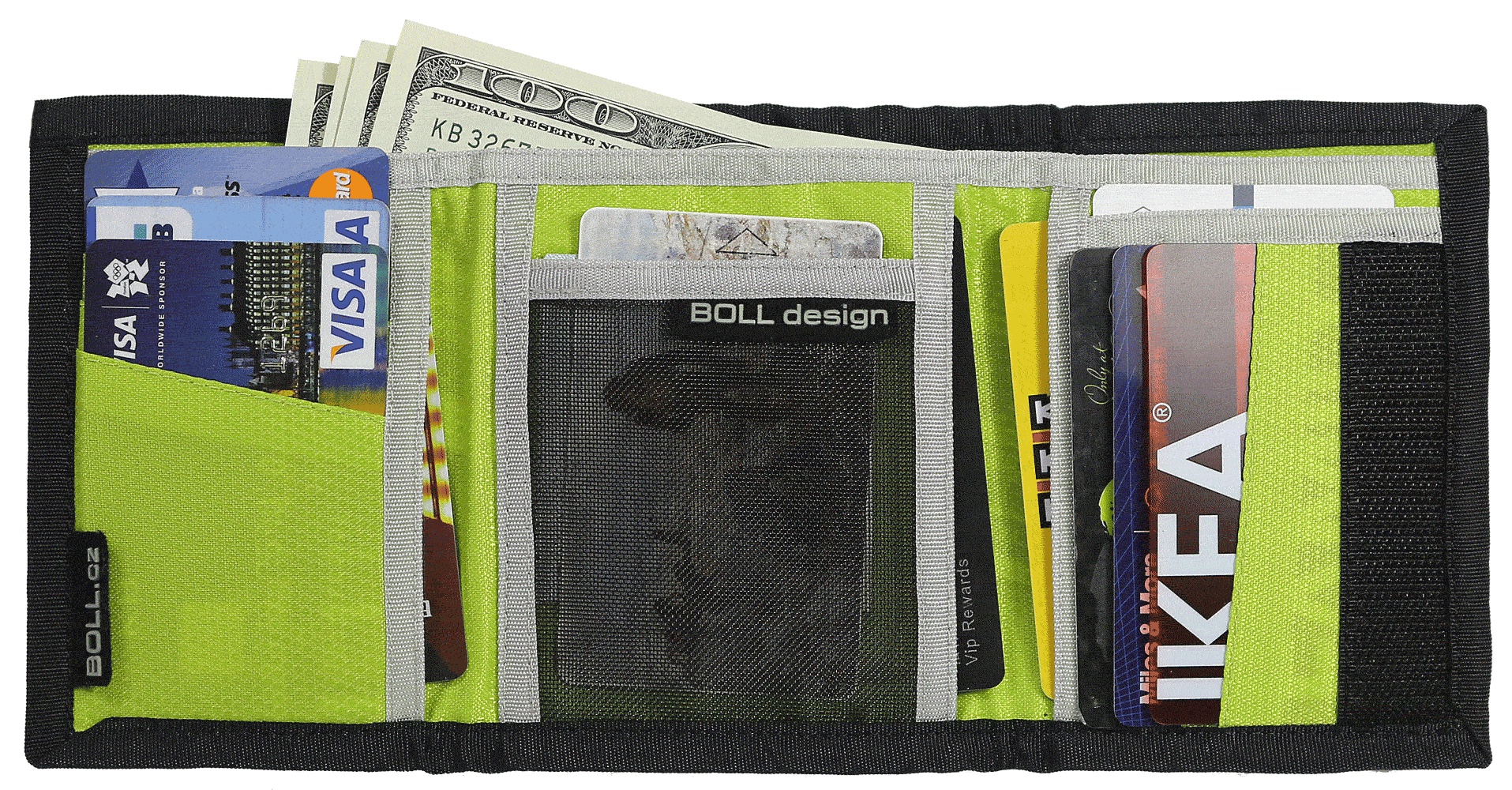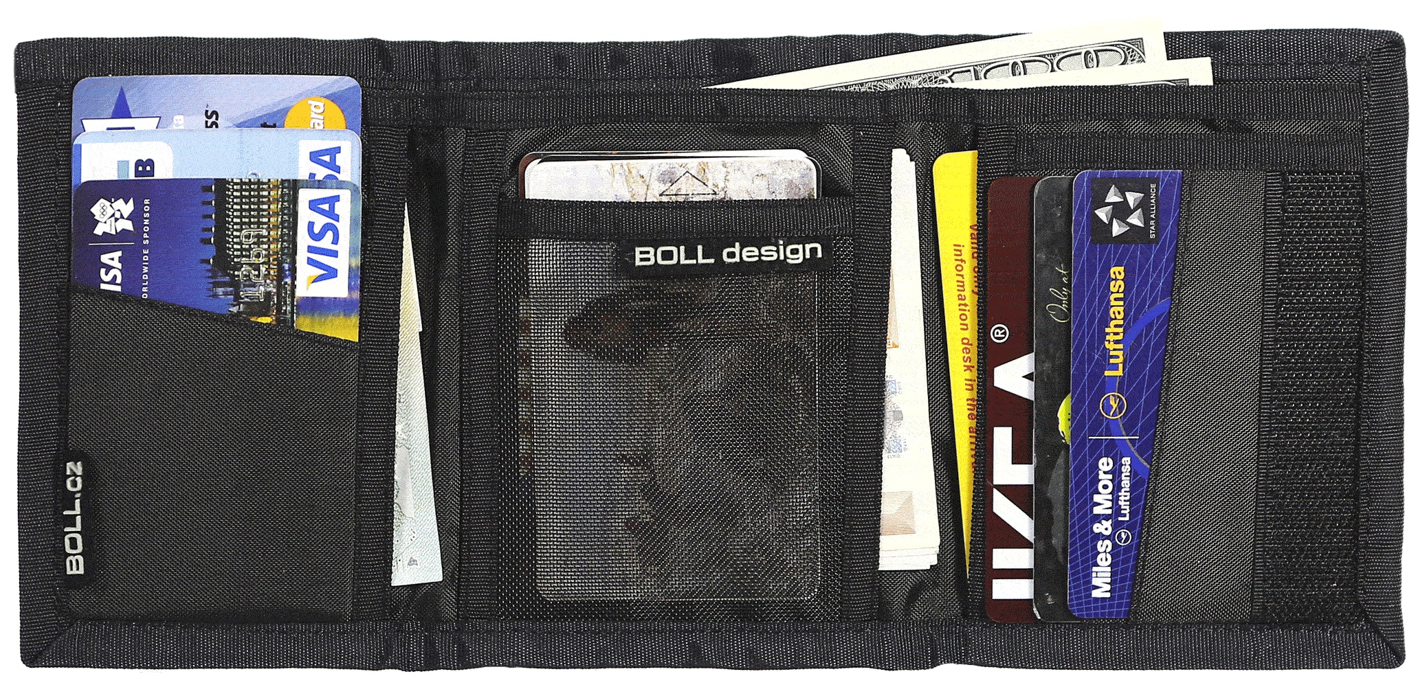 Praktická a skladná peněženka do kapsy s propracovaným designem a řadou kapsiček na bankovky, mince, kreditní karty i doklady.
