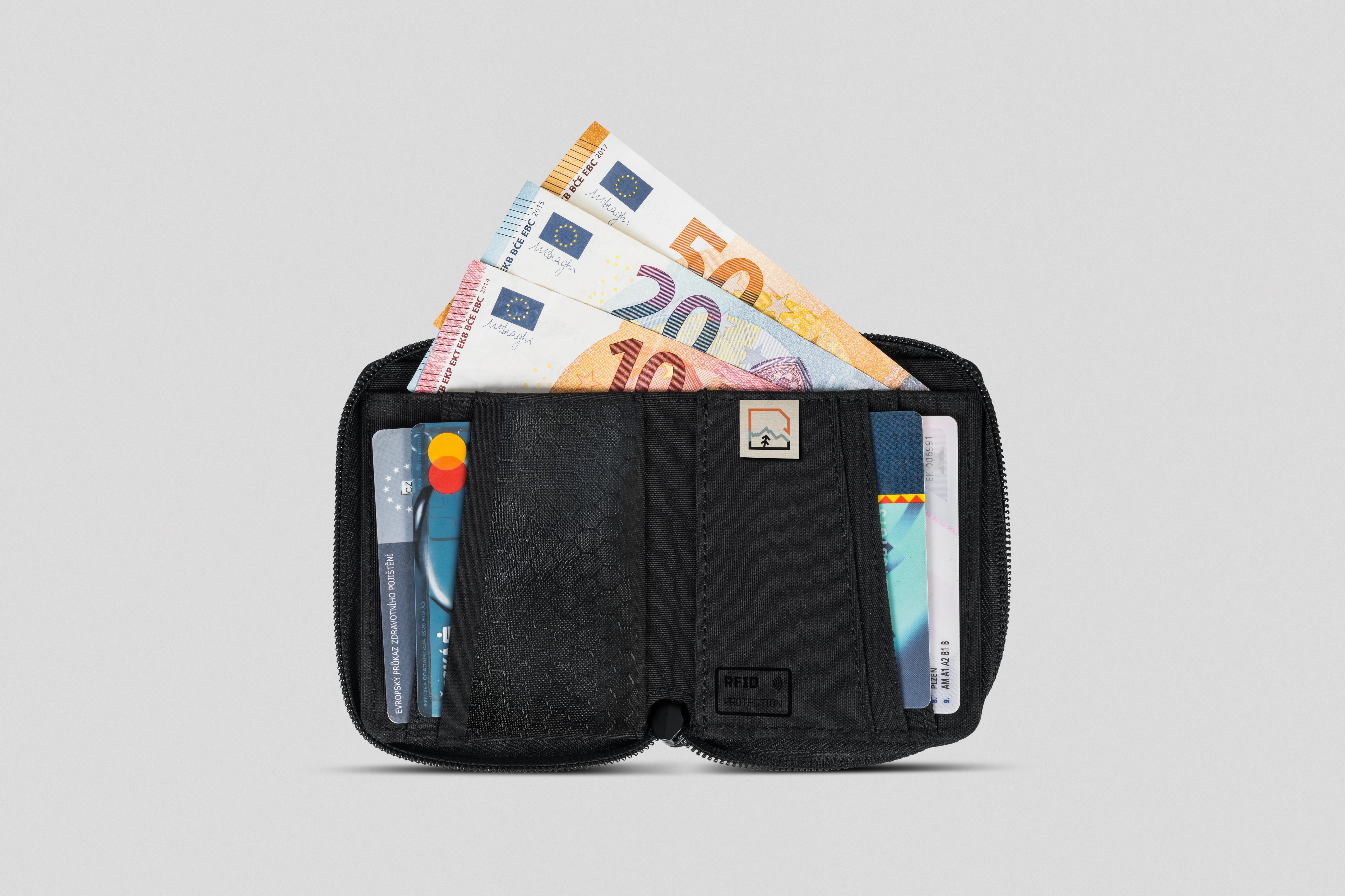 Praktická malá cestovní peněženka Hannah Rich. Prostor pro mince, platební karty i doklady. Zapínání na zip a RFID ochrana. Je vyrobena z recyklovatelných 3 kusů PET lahví.