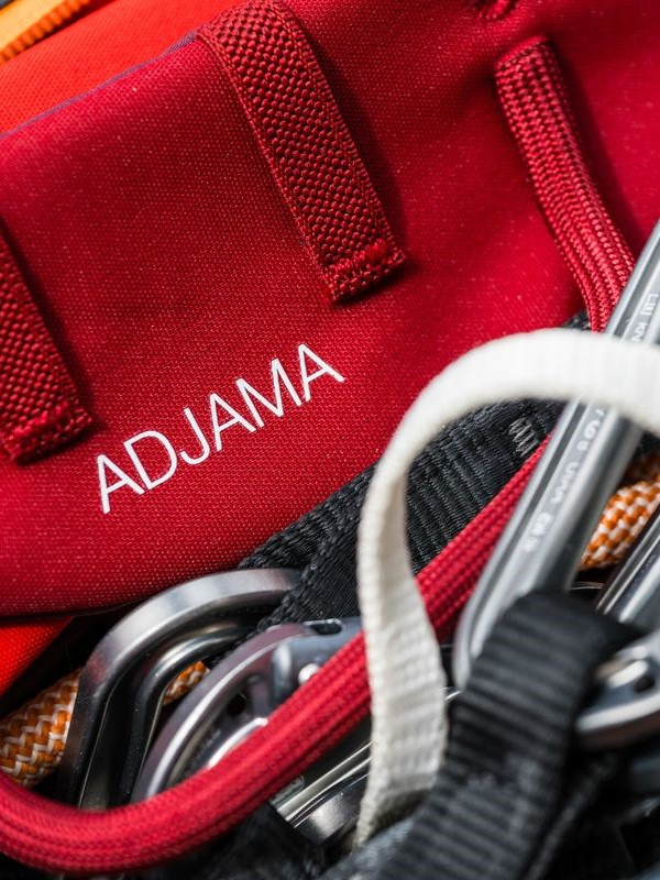 ADJAMA je sedací úvazek navržený pro jednodélkové, vícedélkové i tradiční lezení. Díky nastavitelným nožním popruhům se přizpůsobí různým typům postav a také vrstvám oblečení podle rořních období. Jeho konstrukce se zužuje a má hladké švy , které nevytváří tlakové body. S pěti poutky na materiál máte své vybavení na dosah.