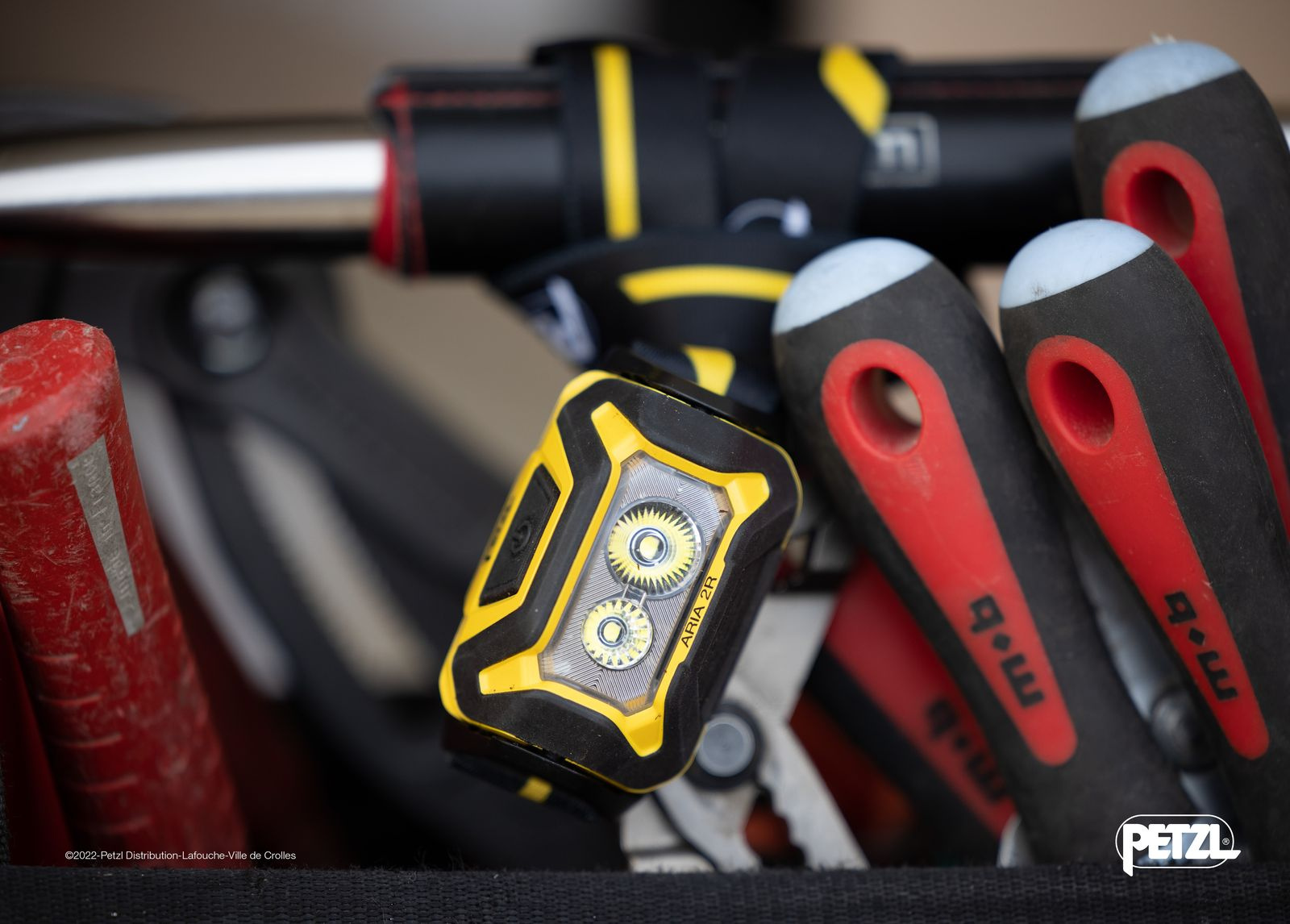 Kompaktní čelovka ARIA 1 R je určena pro řemeslníky a údržbáře. Je robustní, odolná proti pádu a nárazu, vodotěsná a prachotěsná, vhodná do různého pracovního prostředí. Snadno se ovládá jediným tlačítkem. Kompaktní široký rozptýlený kužel světla nabízí pohodlné osvětlení blízkého okolí. Je pohodlná a lze ji nosit na hlavě, na krku a na různých typech přileb pomocí adaptérů, které jsou k dispozici jako příslušenství. ARIA 1 R se dodává s s dobíjecím akumulátorem CORE a díky technologii HYBRID CONCEPT se dá použít také se třemi standardními bateriemi AAA/LR03.