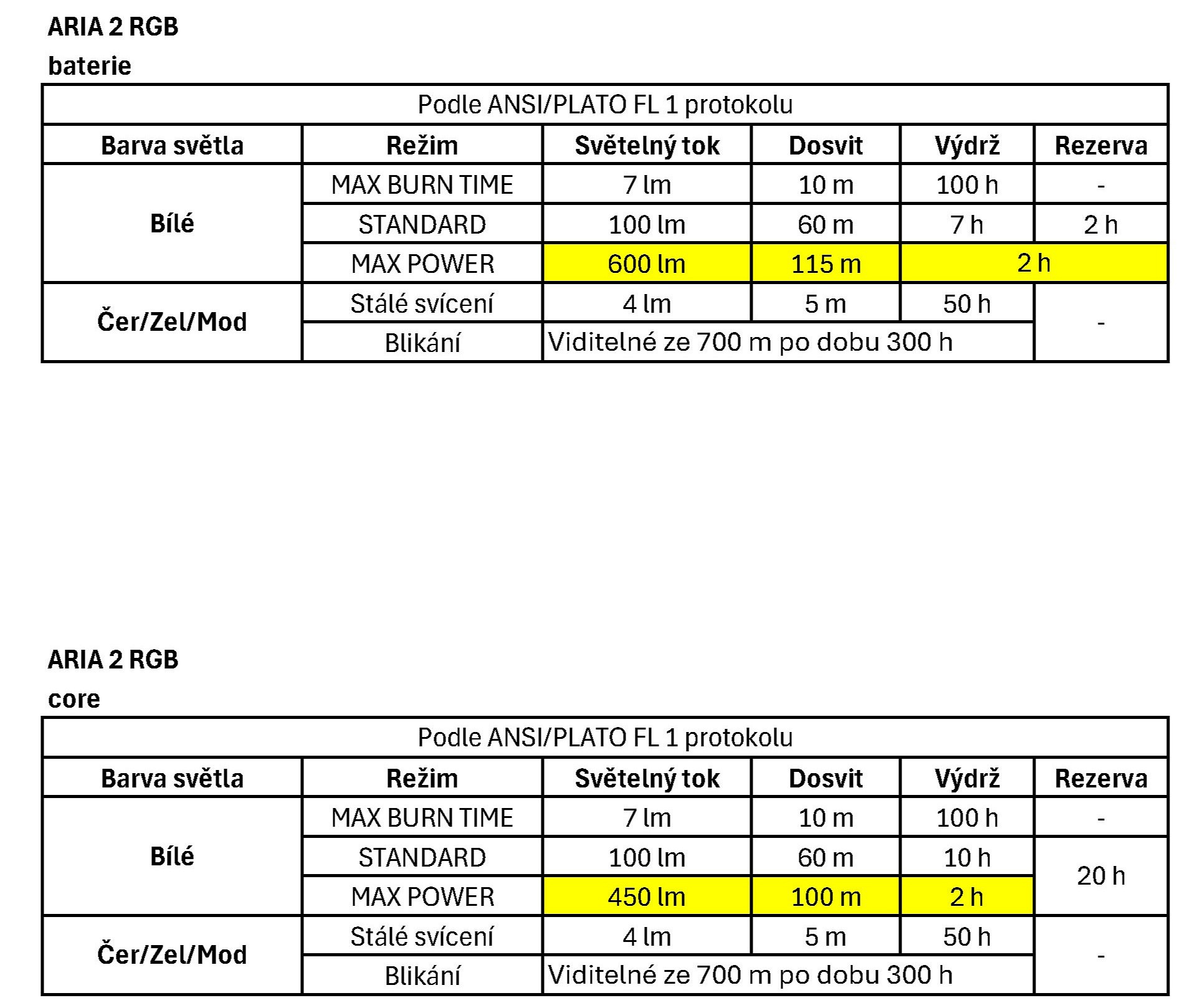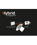 • ARIA 2R RGB je dodávána s dobíjecím akumulátorem CORE, ale díky technologii HYBRID CONCEPT funguje také se třemi standardními bateriemi AAA/LR03 (nejsou součástí balení)