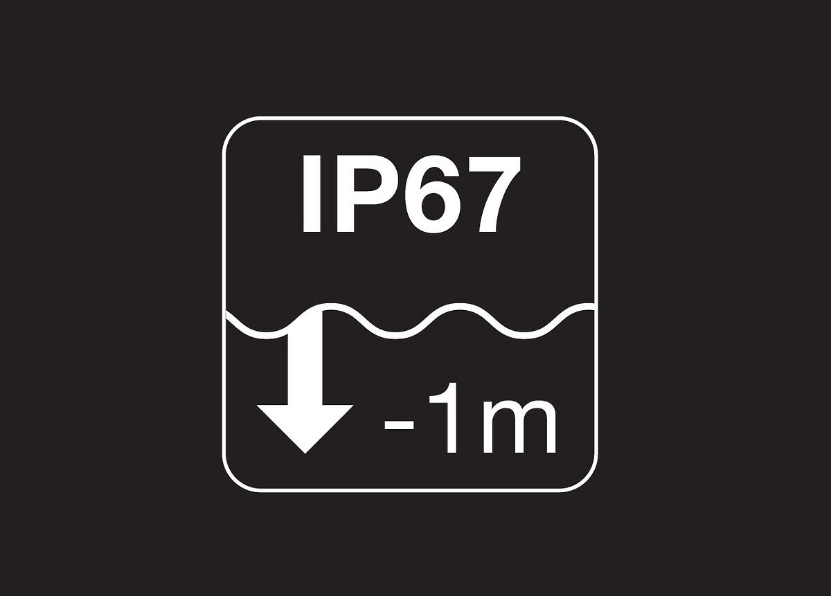 • Prachotěsná a vodotěsná: v hloubce 1 metru po dobu 30 minut (IP67)