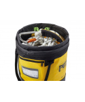 Dvě vnitřní oka umožňují připojit dva konce lana pro rychlou identifikaci Čtyři vnitřní poutka na materiál pro uložení vybavení nebo připojení pouzdra na nářadí TOOLBAG Rolovací uzávěr pro optimální ochranu proti vlhkosti Dvě velká, pohodlná madla pro ruční přenášení a vytahování, až do hmotnosti 50 kg Madlo umožňuje zavěšení na pracovním stanovišti Vnější kapsa na zip pro osobní věci Označovací plocha na vnější straně pro rychlou identifikaci obsahu Vynikající odolnost pro intenzivní používání: