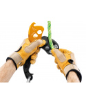 Třístupňové otevírání omezuje riziko náhodného otevření bočnice Připojuje se k hornímu otvoru mechanického prusiku Optimalizovaná životnost díky dvěma třecím segmentům, které jsou k dispozici jako náhradní díly CHICANE umožňuje pracovat v souladu se standardem ANSI Z133