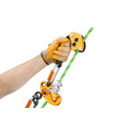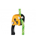 - Průřez spojky ve tvaru písmene H spolu s polohovacím kroužkem mechanického prusiku dělají z celého systému kompaktní celek, který zajišťuje plynulé klouzání lana během výstupů