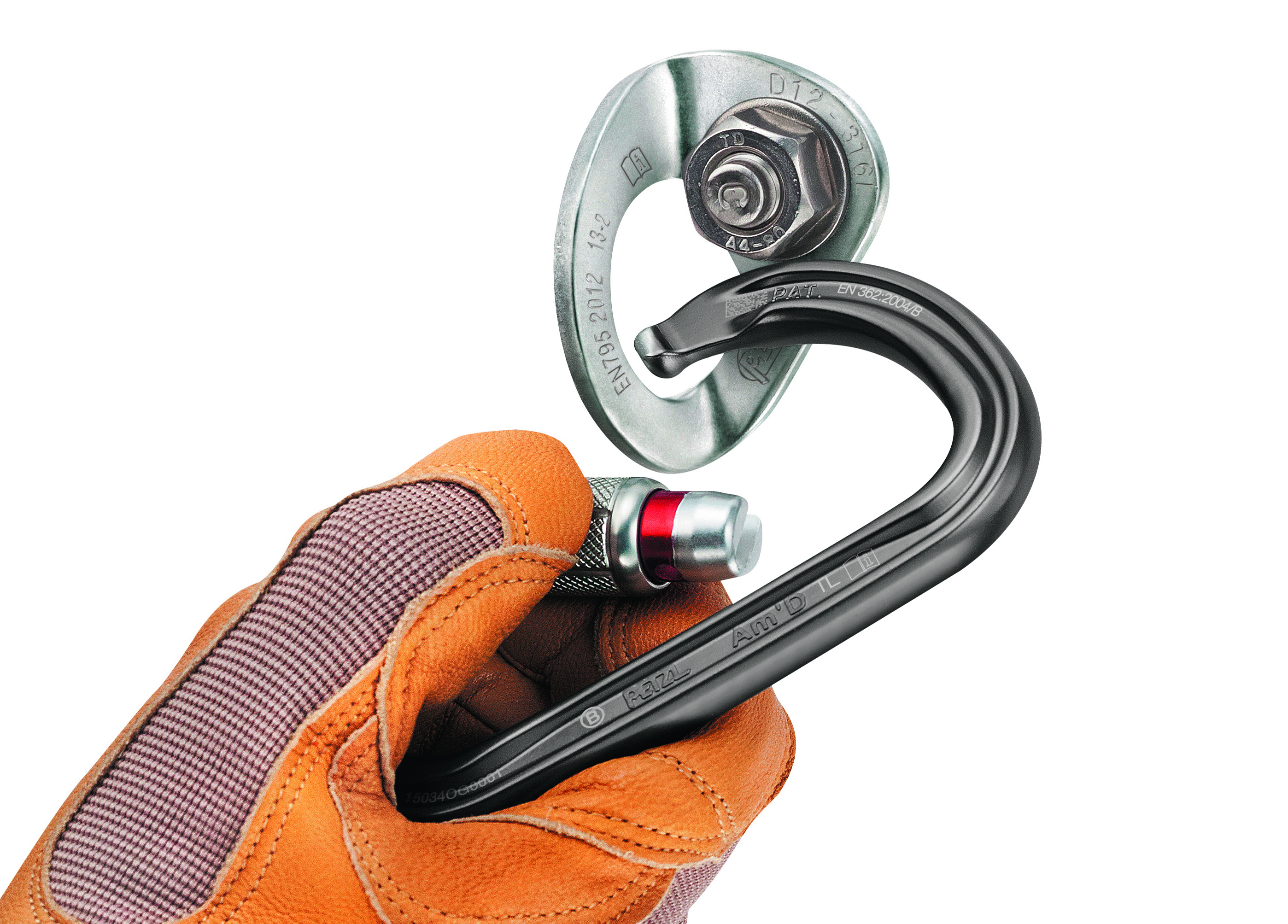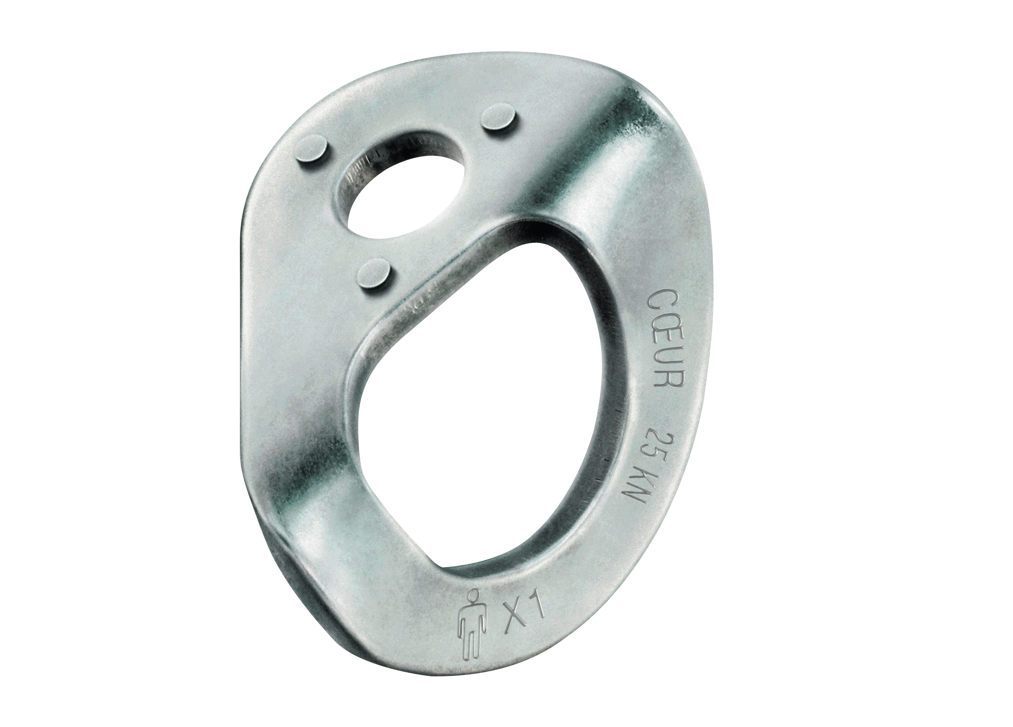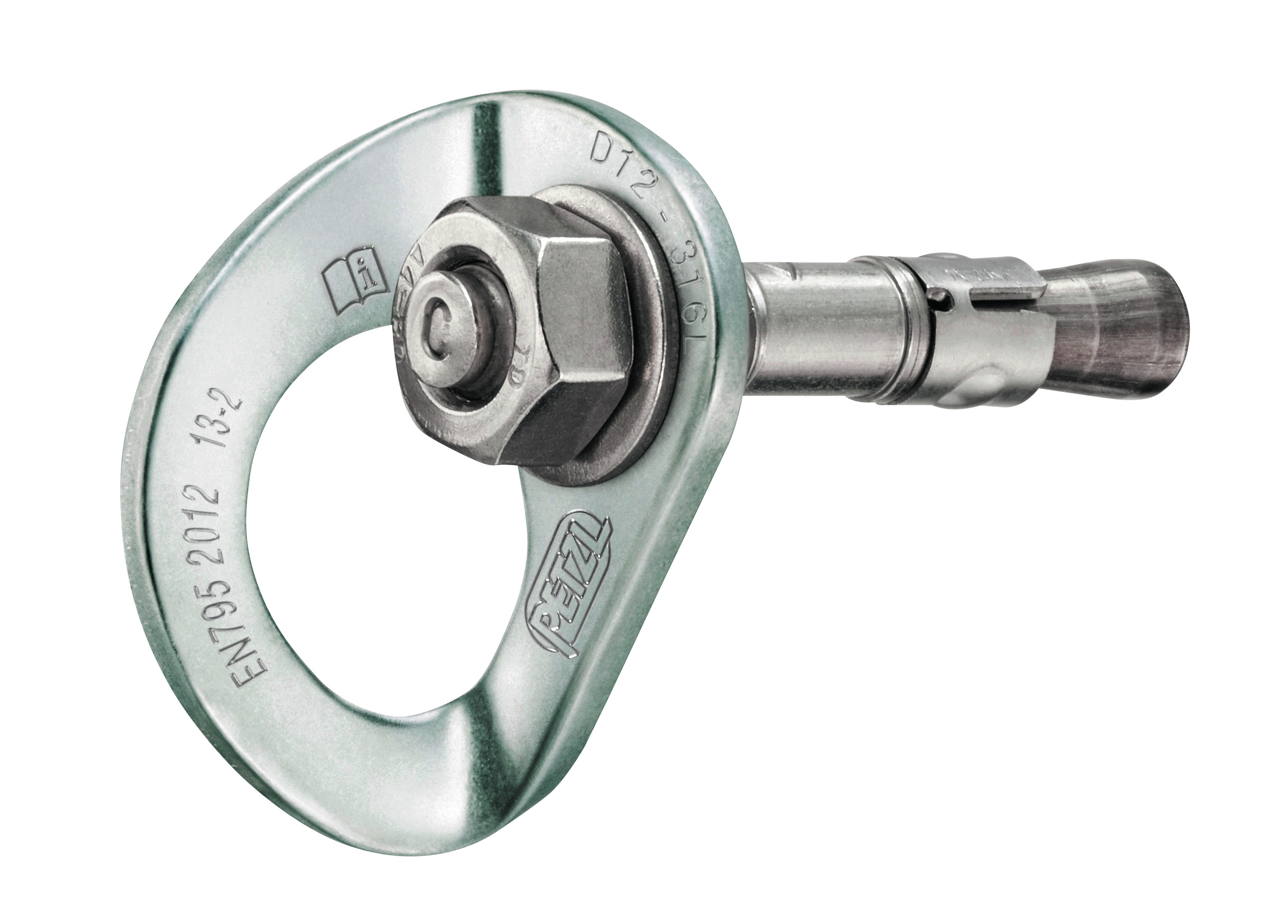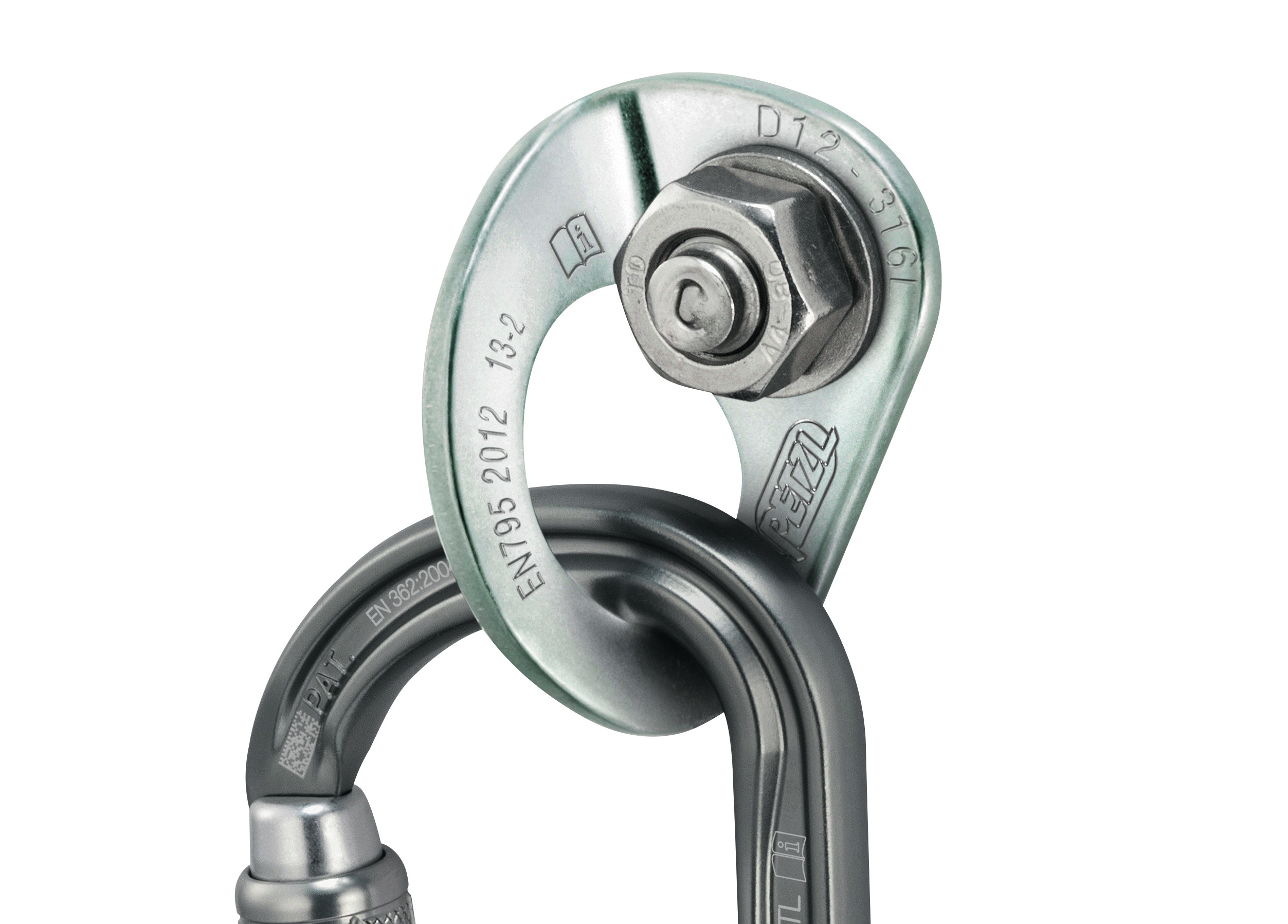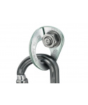 Šířka otvoru umožňuje instalaci dvou karabin současně Snižuje opotřebení karabin: tloušťka závěsu a zaoblené hrany spojovacího bodu minimalizují opotřebení karabin K dispozici ve dvou velikostech šroubů (průměr 10 nebo 12 mm)