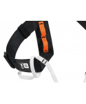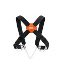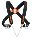Ramenní popruhy pro polohování hrudního blokantu Croll při výstupech po laně ve speleologii, opatřené poutky na materiál.