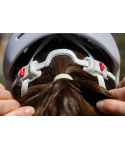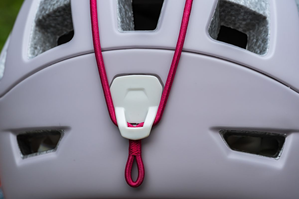 - Tenká přezka na podbradním pásku se zajistí na místě, aby se neposouvala a nedošlo k nechtěnému uvolnění popruhu