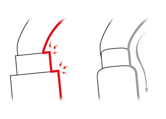 - Hladký povrch na vnitřní straně snížuje riziko zachycení nebo příčného zatížení