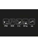 - Odolná svítilna je nárazuvzdorná (IK08), odolná proti pádu (až ze 2 metrů) a odolná proti rozdrcení (až do 80 kg)