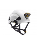 Přepínací knoflík je umístěn na straně těla svítilny, takže nedojde ke znečištění čočky Základová deska umožňuje naklápění svítilny nahoru nebo dolů Indikátor stavu baterií umožňuje oznamuje stav baterií při každém zapnutí nebo vypnutí Po vypnutí se svítilna automaticky uzamkne, aby se zabránilo jejímu náhodnému zapnutí Tělo svítilny se otáčí o 180° pro ochranu čočky během skladování nebo přepravy Symetrický systém nastavení hlavového pásku usnadňuje nastavení na hlavě Hlavový pásek je možné odepnout a vyprat Adaptér SLOT ADAPT, která je součástí čelovky, usnadňuje instalaci na pracovní přilby Petzl se slotem Čelovka je také kompatibilní s nalepovacím adaptérem HELMET ADAPT (k dispozici jako příslušenství) pro instalaci na různé typy přileb (1) Seznam testovaných chemických produktů: 90° líh, bělidlo, minerální benzín, hexan (jedna z hlavních složek benzinu), silikonový tmel.