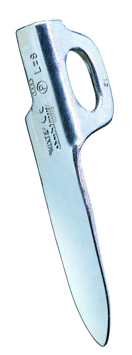 Kovaná nekalená skoba pro úzké spáry ve vápenci nebo žule. Poddajná nekalená ocel se přizpůsobí tvaru spáry.