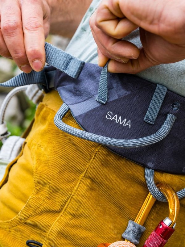 SAMA je pohodlný sedací úvazek, který se hodí jak na umělé ezecké stěny, tak do skal. Elastické nožní popruhy se přizpůsobí oblečení a pohybům, pás je pružný a zúžený na přední straně, aby poskytoval velkou velnost pohybu. Čtyři poutka na materiál poskytují dostatek prostoru pro uložení veškerého vybavení, které potřebujete.