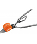 - Karabina s velkou světlostí západky se snadno připojuje a odpojuje ze zajišťovacího ocelového lana