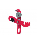 - bezpečnostní západka na otočné bočnici umožňuje snadné založení lana, zatímco zařízení zůstává připojeno k postroji, což usnadňuje míjení postupových kotvících bodů