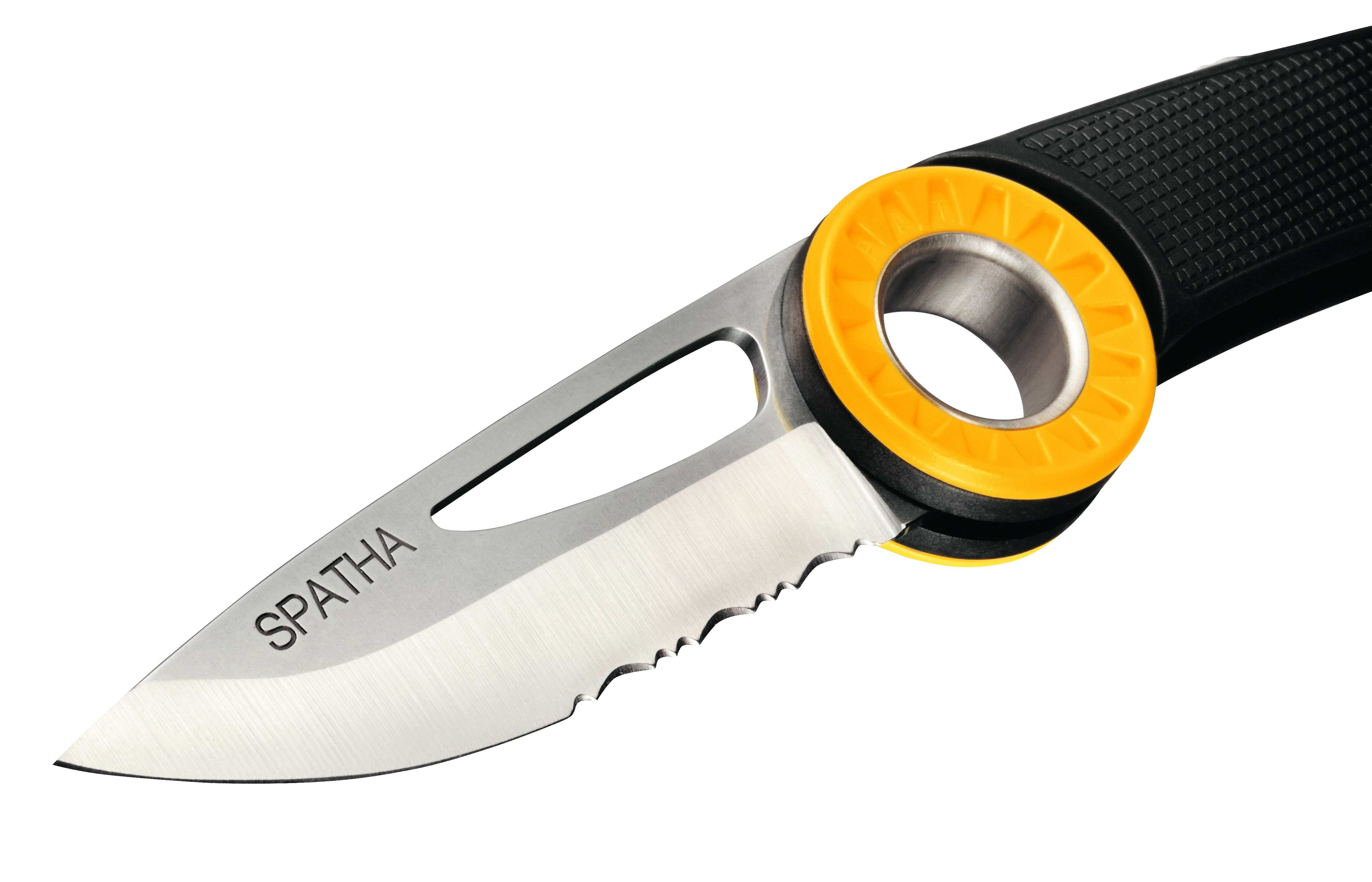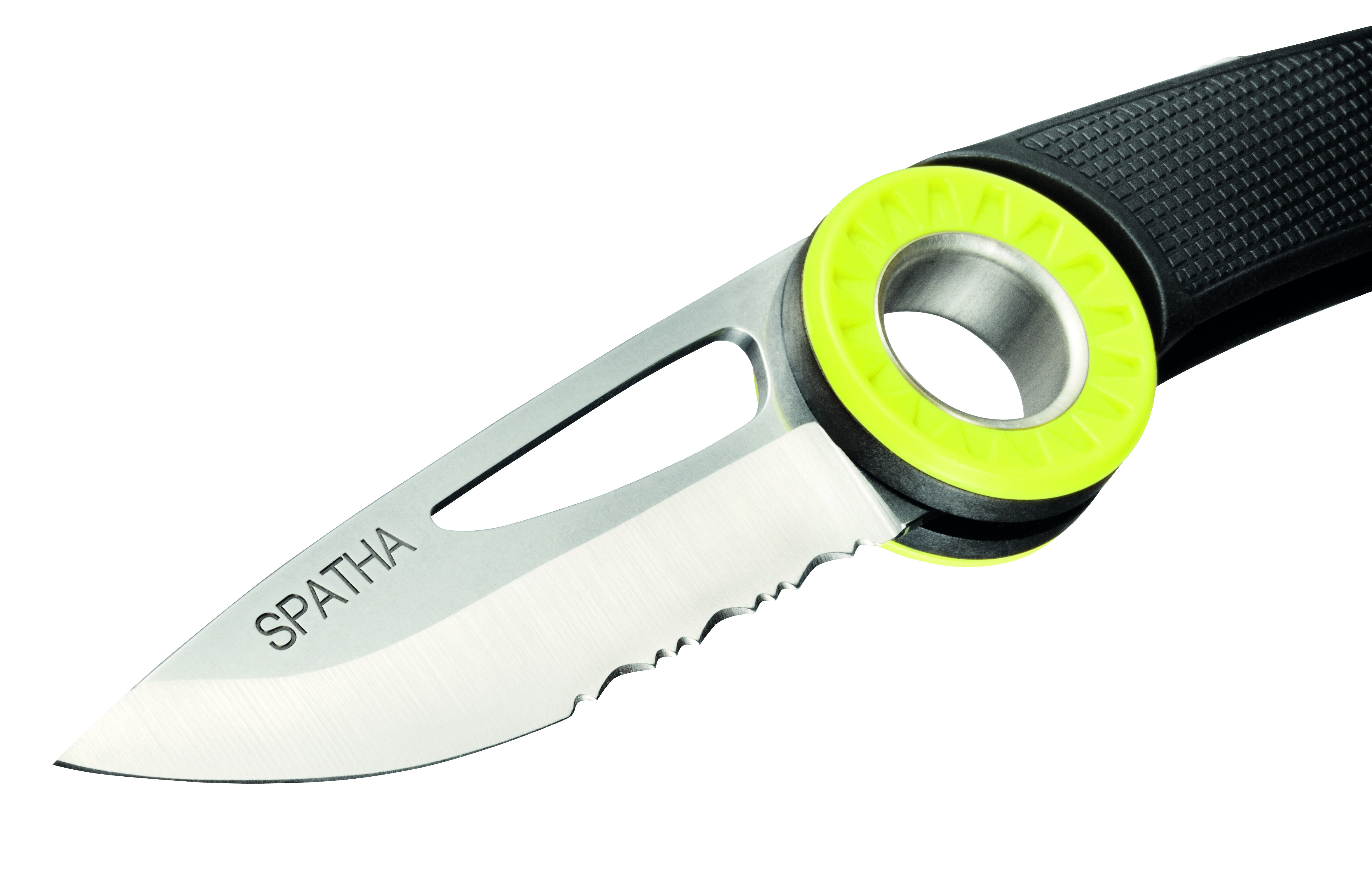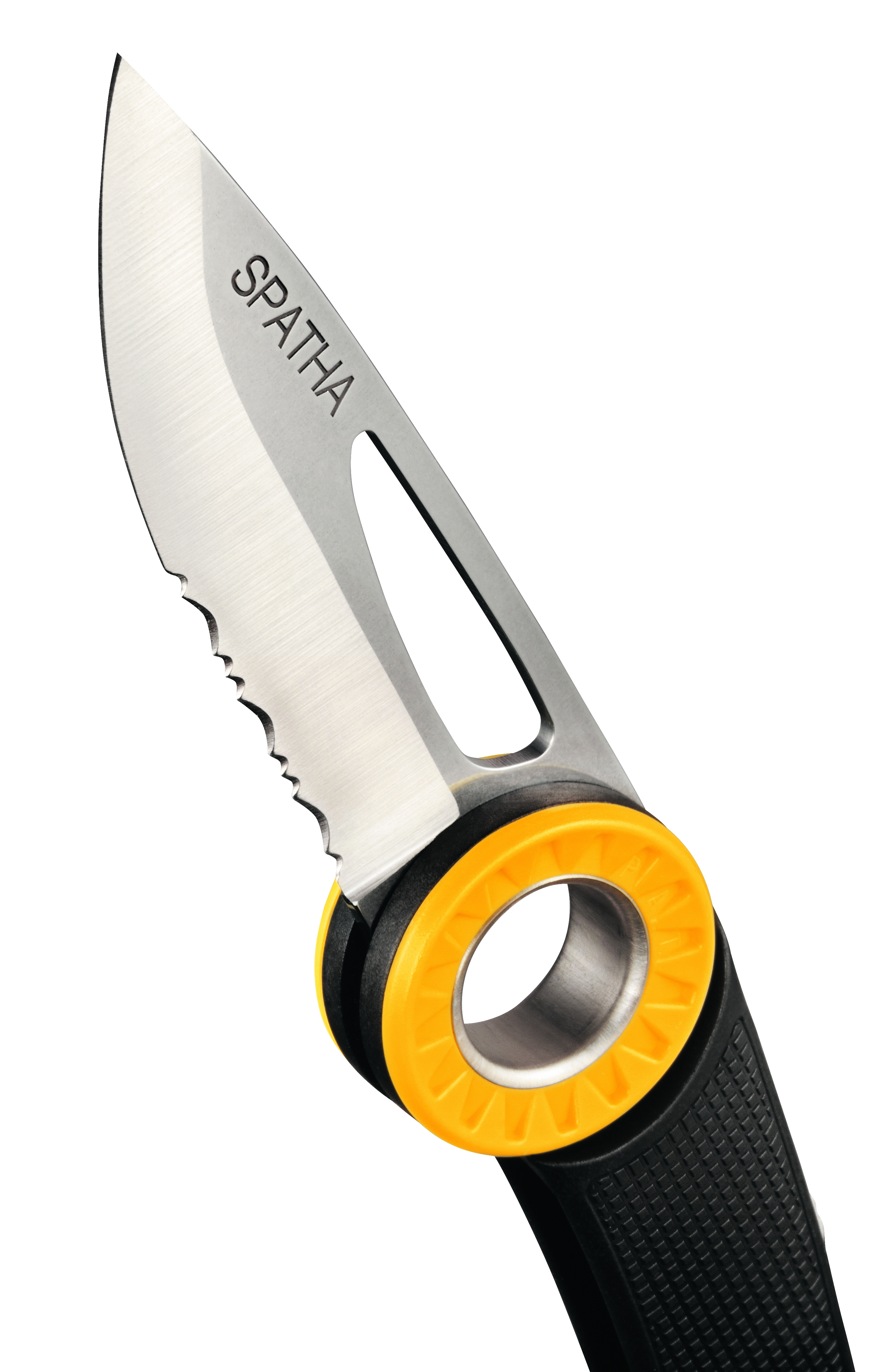 Nůž SPATHA je navržen speciálně pro horolezce. Profil čepele umožňuje snadné řezání lan a smyček. Má otvor pro karabinu pro připevnění nože k úvazku. Plastové kolečko se strukturou slouží k otevírání a zavírání nože v rukavicích, zvládnete ho oteřít i jednou rukou. Má pojistku proti náhodnému zavření.
